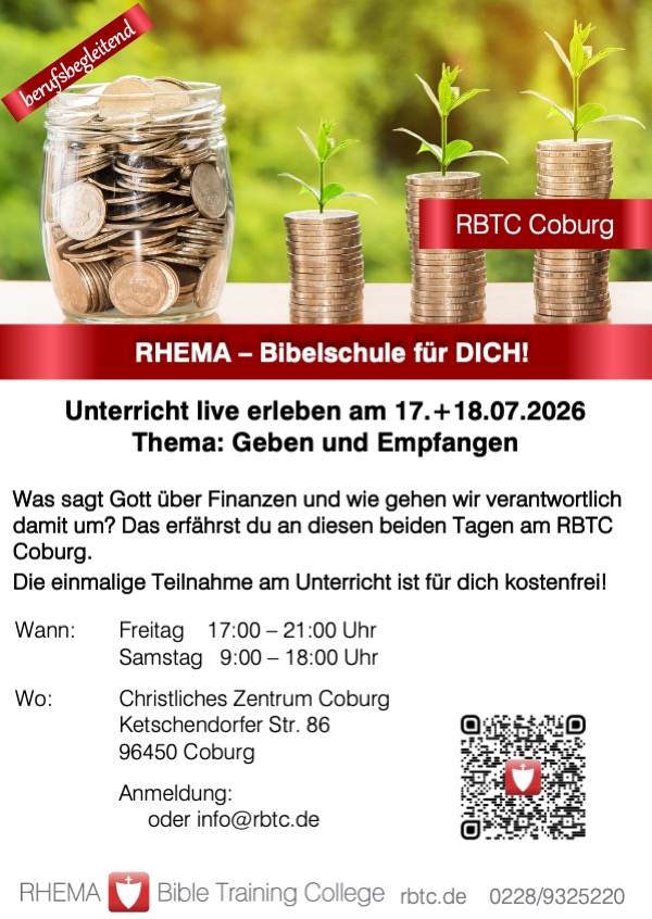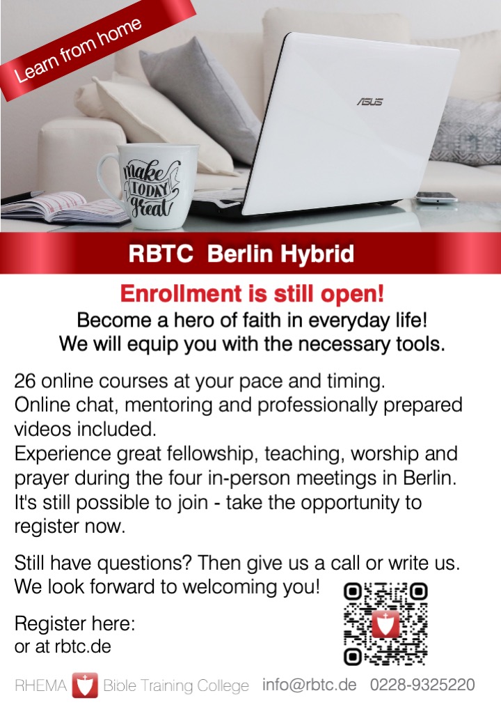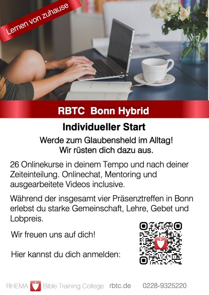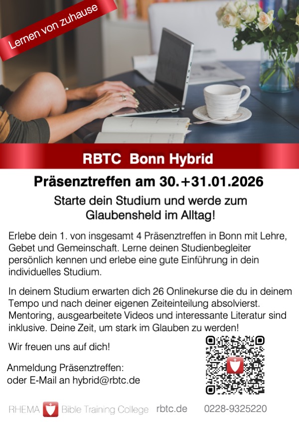 Hinweis: Du kannst deine Einwilligung jederzeit für die Zukunft per E-Mail an office@rhema-germany.de widerrufen. Detaillierte Informationen zum Umgang mit Nutzerdaten findest du in unserer Datenschutzerklärung.